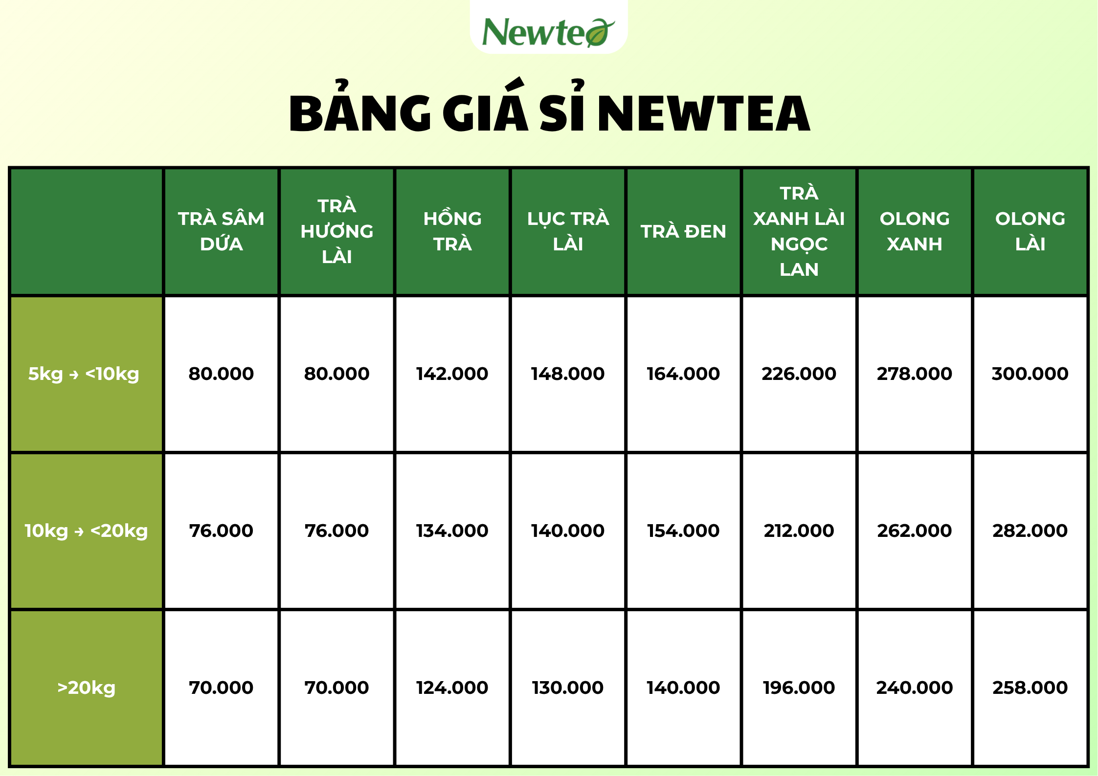 Newtea hiện cung cấp đầy đủ các dòng trà được quán cà phê, trà sữa và đại lý tiêu thụ mạnh nhất:
